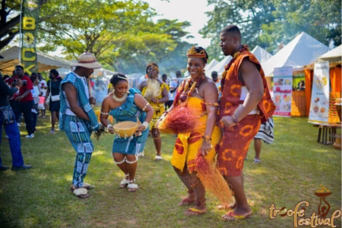 Mme Koffi, installée à Accra avec sa famille, est cheffe d’un restaurant et traiteur. Sa passion pour la cuisine africaine et les souvenirs de repas festifs chez sa grand-mère l’ont conduite à organiser des réceptions qui se sont vite transformées en célébrations entre amis. Elle décide alors de créer le Trôofê Festival, un espace de partage où se mêlent gastronomie, musique, danse et artisanat africains.
