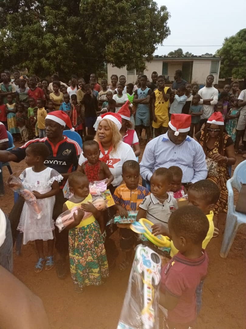 unite.ci, Attiégouakro le 20 décembre 2020 : Ce sont au total 2000 enfants des trois tributs du Canton Nanafouè qui ont reçu chacun un cadeau pour repartir avec le sourire lors de la célébration de Noël organisée par le Colonel Gnako née Koffi Béatrice des Douanes à l’honneur des enfants du département d’Attiégouakro.