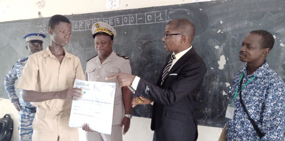 Le secrétaire général de la préfecture Ka Péhé Henri a procédé au lancement des épreuves ce jour en présence du principal du collège Yao Dodo Alexis et des agents de la gendarmerie.