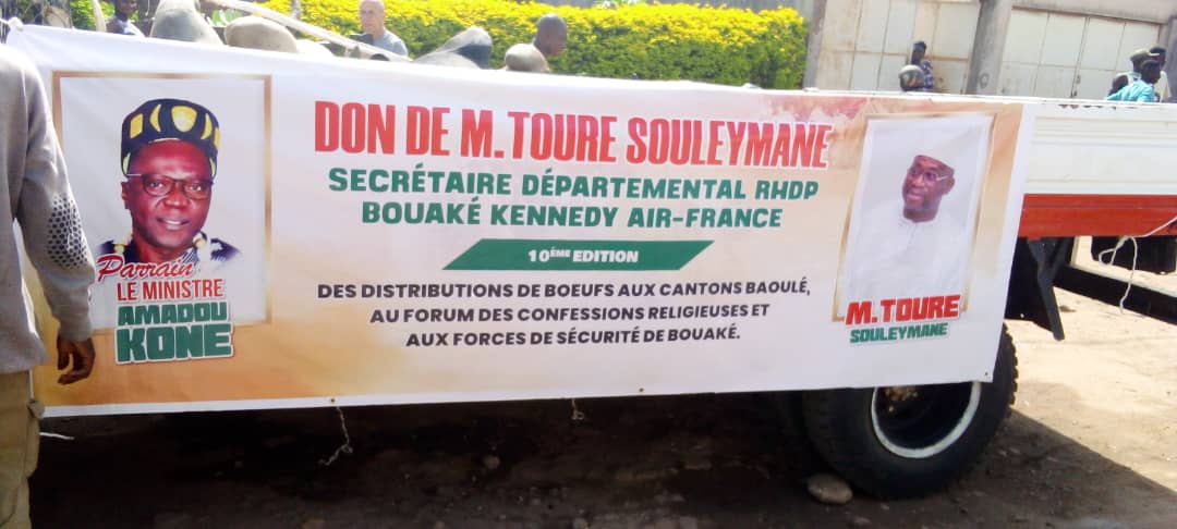 La Cathédrale de Bouaké, la Préfecture de police de Bouaké, RTI Bouaké et la Chambre régionale de Gbêkê des rois ont été les lieux visités avec ces Dons (plus de 10 boeufs).