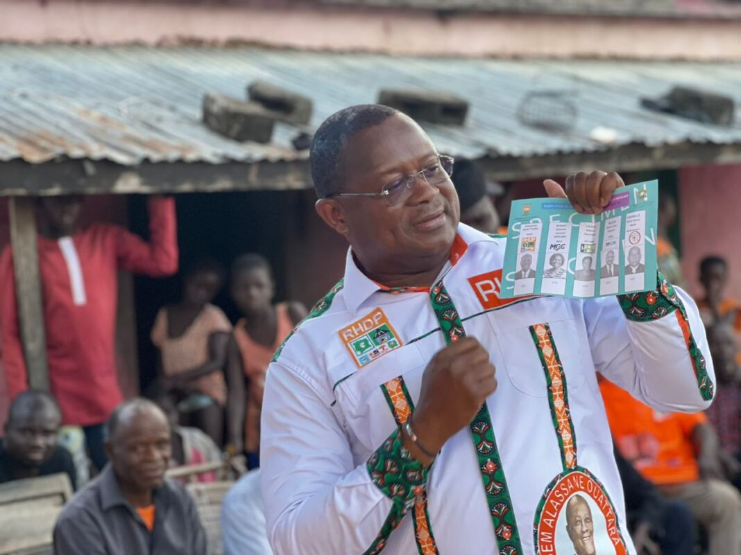 Unite.ci, région du Bounkani : C’est aux pas de course que ce lundi 13 octobre 2025, Dr MICHEL Noufé, Directeur départemental de campagne au compte du Candidat Président ALASSANE Ouattara a entamé son périple dans la Zkb dans le département de Bouna. Accompagné de son adjoint, le député de cette circonscription, l’honorable KAMBOU Sié et de l’ancien député de cette zone, l’honorable DAH Sié, l’objectif est clair. Faire de cette zone fortement peuplée, l’une des citadelles du Bounkani qui s’illustrera de la belle manière au soir du 25 octobre prochain en donnant le maximum de voix à leur mentor,le Président ALASSANE Ouattara.