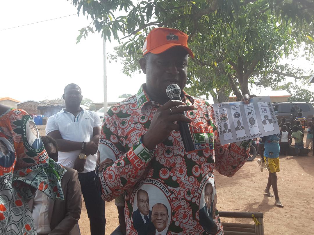 unite.ci, Bouna le 29 octobre 2020: Cocher la case du candidat du RHDP et marquer à l’index de l’encre indélébile sans se tromper. C’est la trame du message que le coordonnateur régional associé pour la campagne du RHDP s’est évertué à faire passer dans tous les villages et hameaux de la région du Bounkani.