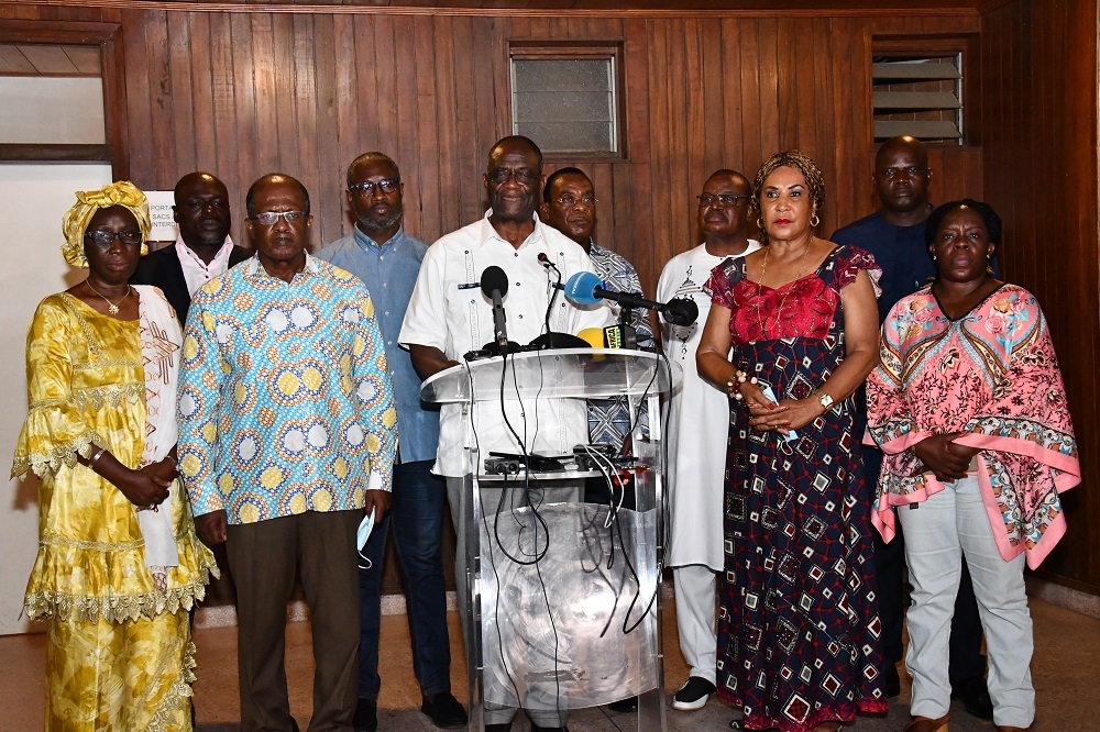- Remercient ces milliers de militantes et militants de base, ces démocrates venus de toutes les communes d’Abidjan, de certaines villes de Côte d’Ivoire, ceux qui ont pu accéder au stade comme ceux qui ont été empêchés d’y accéder, pour être les témoins oculaires de la cohésion de l’opposition et prendre à témoin la communauté nationale et internationale du parjure et de l’imposture des tenants du pouvoir RHDP ;