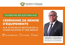 Unite.ci : A 4 jours de l’ouverture de la campagne présidentielle en Côte d’Ivoire, le ministre de la Communication, porte-parole du gouvernement, Amadou Coulibaly, a procédé ce lundi 6 octobre 2025, à Abidjan à l’esplanade de Fraternité matin , l’organe de presse gouvernemental , à la remise d’équipements et d’une subvention en carburant de 300 millions F CFA aux acteurs du secteur de la communication et des médias, en vue de renforcer leurs capacités pour la couverture de l’élection présidentielle du 25 octobre prochain.