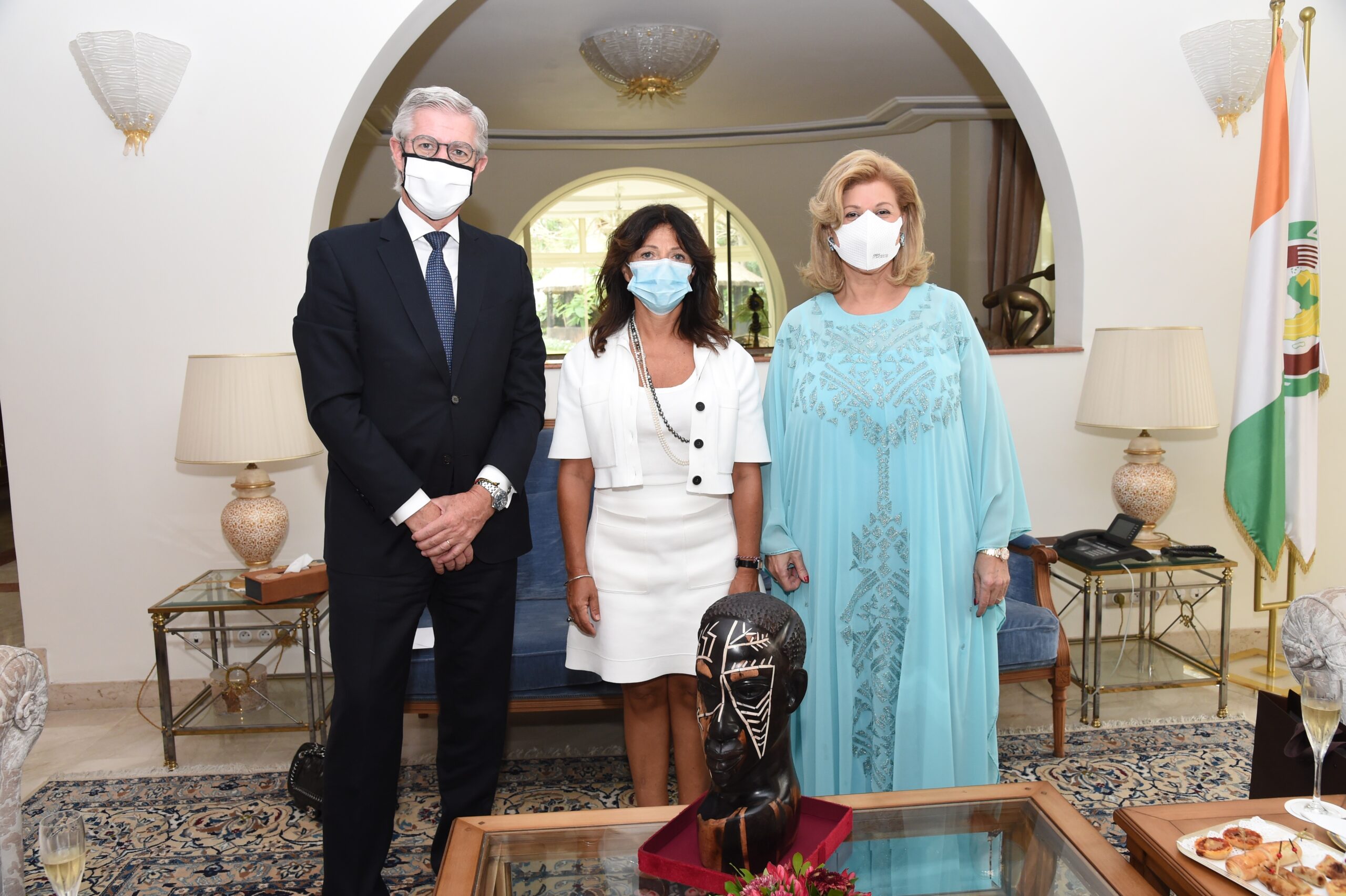 Avant son départ, la Première Dame, Madame Dominique Ouattara, l’a reçu entourée des membres de son cabinet ce mardi 23 février 2021 en audience à la Résidence Présidentielle en compagnie de son épouse. Monsieur Thierry De Jaham est venu remercier la Première Dame pour le soutien et surtout les sages conseils dont il a bénéficié durant sa mission. Il part mais ses pensées seront toujours vers Abidjan. Madame la Première Dame a remis au couple des cadeaux souvenirs et a relevé la légendaire disponibilité du DG sortant non sans lui souhaiter plein succès dans sa nouvelle mission.