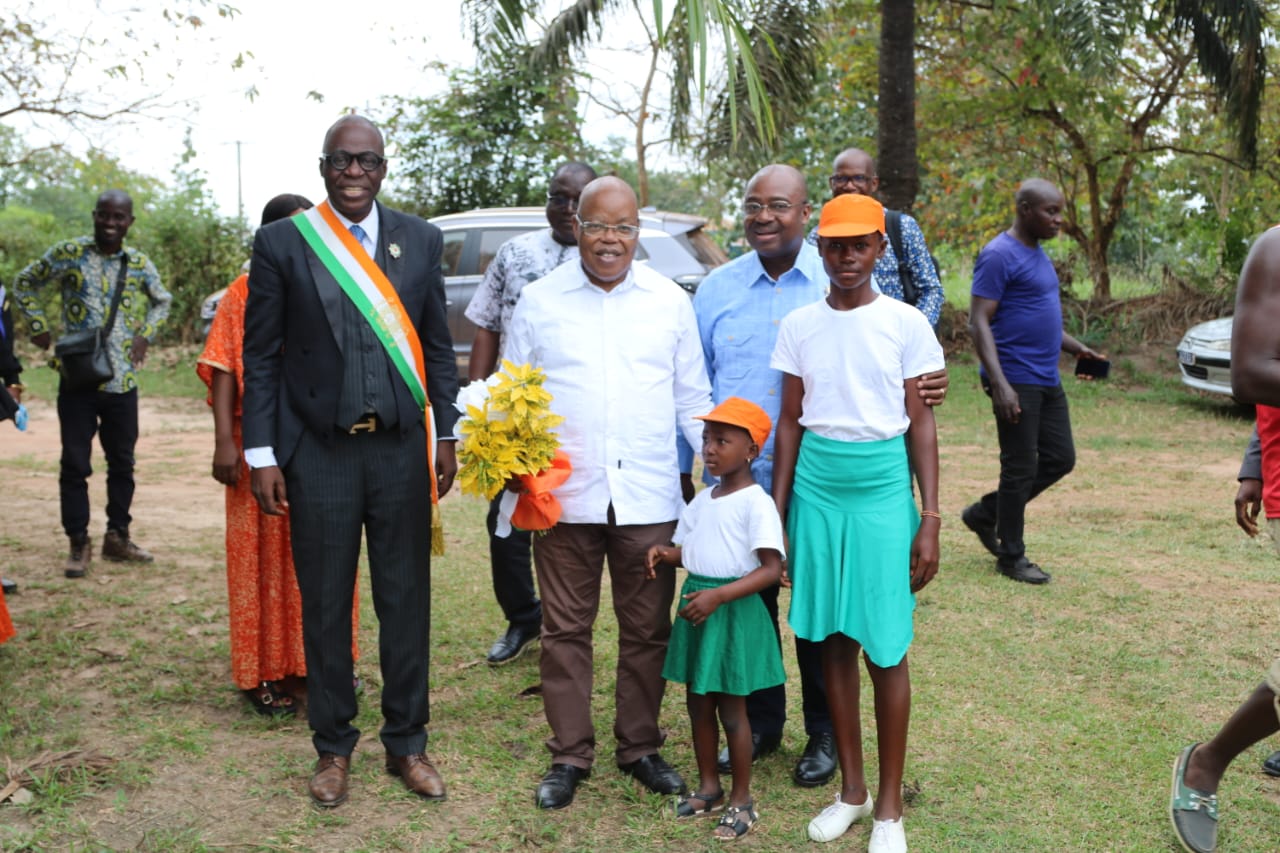 Là-bas, ils ont été accueillis par les chefs coutumiers, dont Nanan Amani Kouassi chef de la localité, Nanan N’dri Kouassi chef du village de singrobo, nanan yao Faustin chef du village de pacobo, nanan kouadio blé chef du village de affouekro, nanan kassi Noël du village brikime et nanan n’dry yao ,chef assoumoukro.