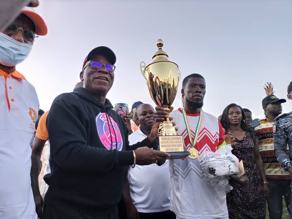 Unite.ci : Le lancement de la première édition du tournoi de la fraternité, doté du trophée Assahoré Konan Jacques a eu lieu le samedi 31Juillet dernier au terrain de Botro, a connu son vainqueur ce samedi 18 Septembre. Cette compétition qui a opposé 89 équipes s’est terminée sur une confrontation entre l’équipe de Kouassi-golikro de Diabo contre l’équipe de Kouadiokro de Botro sur un score de 3 à 0 aux tirs au but en faveur de l’équipe de Kouadiokro.