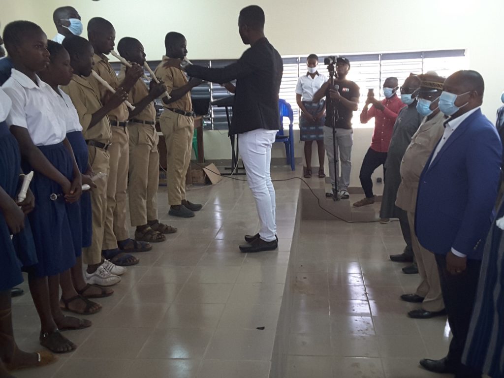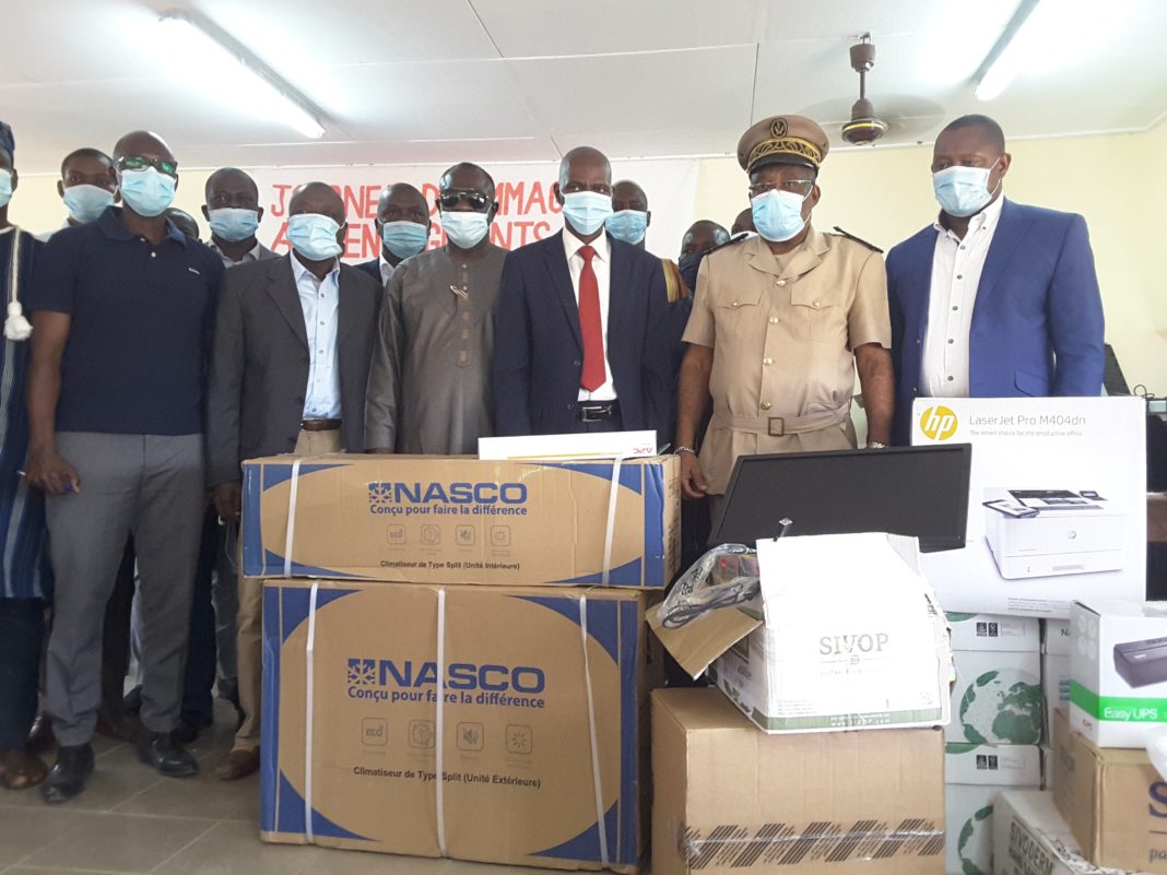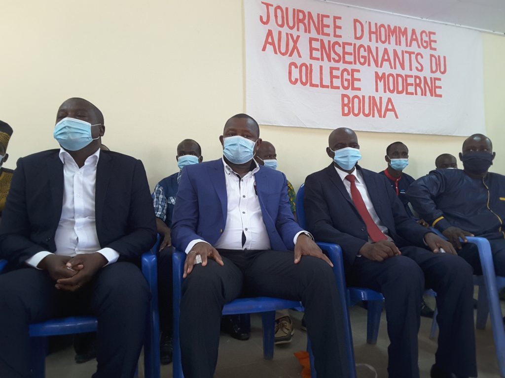 A en croire M. CAMARA Souleymane, le Président du COGES, c’est un hommage mérité, vu le travail effectué malgré les difficultés rencontrés. En effet, ouvert officiellement en octobre 2015, le collège moderne de Bouna qui totalise environ un millier d’élèves est la résultante de l’engagement de l’Etat Ivoirien à travers le Programme Présidentiel d’Urgence (PPU), de combler le déficit en infrastructures pouvant freiner le processus normal de développement des régions. Selon donc le représentant du DRENEPT, aujourd’hui, cet établissement fait la fierté du département. Raison pour laquelle, le Parrain de la cérémonie, Monsieur NOUFE Michel, Directeur des Moyens Généraux du Trésor, par ailleurs Conseiller Politique RHDP et Coordonnateur Associé RHDP de la Région du Bounkani, n’a pas lésiné sur les moyens. Il a donc saisi cette occasion pour une fois encore faire œuvre utile. Il a donc offert, un important lot de matériel d’équipement et de matériel de bureau, composé d’ordinateur complet, d’onduleur, d’imprimante multifonction, de consommable informatique, de fourniture de bureau de nature divers et de climatiseur. Une manière pour lui de contribuer à l’atteinte des objectifs fixés. Il a également prodigué des sages conseils aux élèves et a remis des kits sanitaires pour permettre à ceux-ci de se protéger contre la pandémie du Covid-19, tout en prenant l’engagement d’offrir également à cette établissement du mobilier de bureau et des appareils électroménagers très bientôt.
