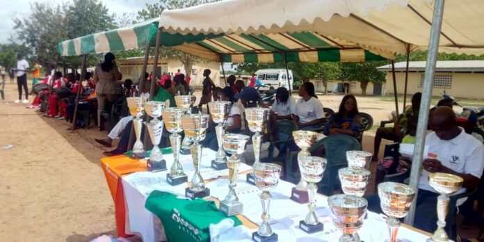 Yaya Touré, chacun quand même arrive à pourvoir à ses propres besoins. Donc Aujourd’hui l’Oissu donne l’opportunité aux enfants de pouvoir installer leurs connaissances, leurs talents, afin que demain ils puissent être en mesure de bénéficier de leurs talents, mais aussi leur permettre d’être toujours dans de très bonnes conditions et être occupé également de façon saine. Nous sommes pratiquement en vacances, les enfants sont occupés de façon saine, loin de beaucoup de vices. » Madame le Sous-préfet de Toumodi Ines Yemaffou assurait la présidence de cette cérémonie. Il y avait 16 trophées disposées sur la table des officiels. Au terme de toutes les rencontres, toutes disciplines confondues; Divo a été déclaré grand vainqueur de la compétition en glanant 8 trophées dont 4 en football et 4 en handball. voici quelques résultats: Toumodi a gagné 4 trophées dont 2 en baskettball, 1 en handball, et 1 en volleyball. Bongouanou a gagné 3 trophées au hand ball. N’Dri N’Guessan chef du département de la communication, du marketting, des relations etérieures de l’Oissu est intervenu pour dire ce qui suit: » L’Oissu se présente comme le creuset de détection des talents pour le sport ivoirien. Jusqu’à présent au niveau international que ce soit au taekwondo, ou dans les autres disciplines, nous sommes toujours cités, ce sont des athlètes qui sont issus du moule de l’Oissu qui reste la pépinière du sport national. Nous pensons que ces activités qui se déroulent actuellement sur 8 villes du pays, des villes de développement sportif de l’Oissu, sont des activités qui intéressent tous les sportifs en premier lieu les parents d’élèves, le monde scolaire. Car quand le sport se déroule bien à l’école, l’école est apaisée. et les enfants vont tranquillement suivre les cours. Généralement, il n’y a pas d’activités sportives, la tension monte;, Je dis que le sport contribue fortement à la cohésion sociale, l’apaisement du climat à l’école, finalement à la bonne santé de l’école, donc, finalement que tous soutiennent l’Oissu. »