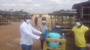 Le maire Remi Dion, présent sur les lieux a profité pour faire un don de dispositifs de lavage des mains aux commerçants.C’est le président des commerçants Goua Narcisse, qui a reçu symboliquement le premier seau de lavage de mains de la part du maire. Sans oublier qu’il a promis , veiller sur la bonne utilisation de ces dispositifs, qui seront installés aux quatre coins du marché .