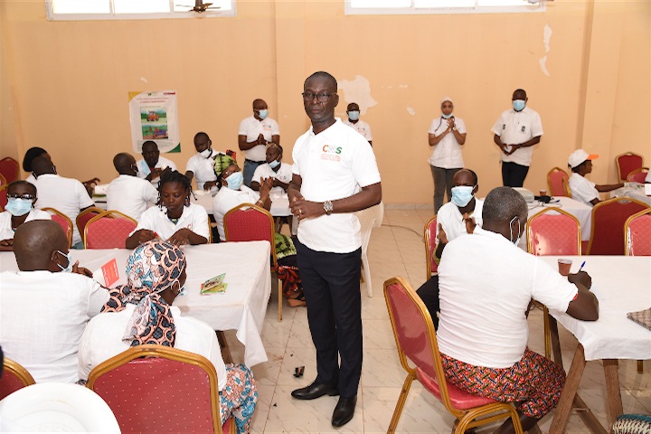 - Amani Konan, consultant national sur la question de travail des enfants au Comité National de Surveillance des actions de lutte contre la Traite, l’Exploitation et le Travail des Enfants (CNS) a expliqué l’enjeu de la lutte contre le travail des enfants dans la cacaoculture. Pour ce dernier, la question du Travail des Enfants dans le cacao a été érigée en priorité depuis l’accession du Président Alassane Ouattara à la magistrature suprême. En effet, il a révélé que les pays occidentaux veulent imposer un embargo sur le cacao ivoirien au prétexte qu’il est cultivé par des enfants. Une situation qui a emmené le chef de l’Etat a créé deux (02) organisations que sont le Comité National de Surveillance des actions de lutte contre la Traite, l’Exploitation et le Travail des Enfants (CNS) dirigé par la Première Dame Dominique Ouattara et le Comité Interministériel de lutte contre la Traite, l’Exploitation et le Travail des Enfants (CIM) dirigé quant à lui, par Maître Adama Diawara, Ministre de l’Emploi et de la Protection Sociale. Il a en outre, révélé à son auditoire l’importance de cette lutte pour l’économie ivoirienne. En effet, il a souligné que c’est le cacao qui soutient l’économie ivoirienne. De ce fait, un embargo sur le cacao ivoirien sera désastreux pour son économie. Il a terminé en invitant les parents à ne pas se servir des prétextes de ces vacances pour astreindre les enfants à des travaux dangereux pour leur bien-être.