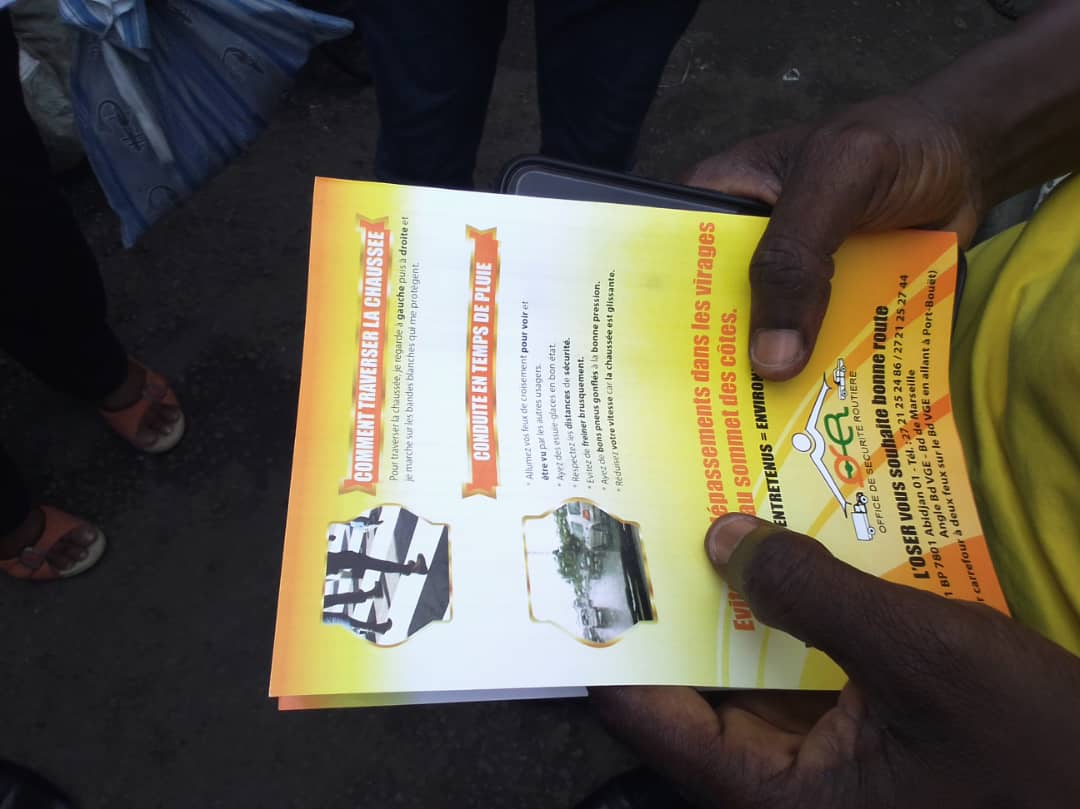 Ce mardi 28 décembre sur le coup de 10 H, une équipe d’agents de l’OSER conduite par M. Ezo Amoikon, chargé d’étude, accompagnée d’agents de la police de la circulation ont investi la gare routière de Grand Bassam sise à Abidjan dans la commune de Treichville. Dans cet espace où grouille du monde composé de conducteurs et voyageurs, la délégation de l’OSER a fait passer le message de sensibilisation à la sécurité routière. Conseils et flyers à l’appui, M. Amoikon et son équipe ont convaincu leurs interlocuteurs à mieux se comporter au volant, sur les routes et à bord des véhicules.