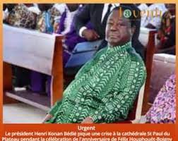 « Après un coup de chaleur dû à l’humidité ambiante et une mauvaise aération de la Cathédrale Saint –Paul du Plateau lors de la célébration de l’anniversaire de naissance du Président Félix Houphouët-Boigny ce 18 octobre 2022, le Président Henri Konan Bédié est sorti de la salle en direction de sa résidence, et se porte bien ».