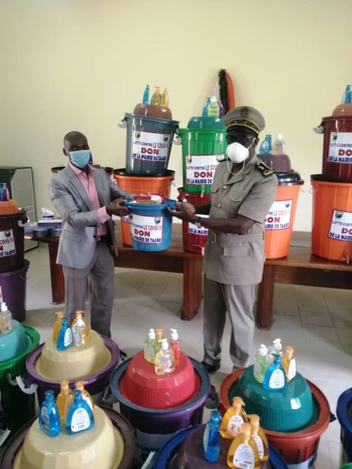 unite.ci, Abidjan le 5 avril 2020 : Le Maire M’gom Alassane Williams de la commune de Taabo veut faire barrage à la propagation de la maladie à Coronavirus dans sa commune. La parfaite illustration de cette volonté manifeste s’est traduit par le don d’un important lot de kits sanitaires d’une valeur de plus d’1 million FCFA au préfet Assamoi Florentin du département de TAABO. C’était le mardi 31 mars dernier dans les locaux de la préfecture. Ces kits sanitaires comprennent plusieurs centaines de seaux à robinet, de seaux, de cartons, de gels hydro-alcooliques, de cartons de savon, de gants et autres cache-nez… Le préfet se chargera de les distribuer dans les gares routières, à la sous-préfecture, à la préfecture, à la gendarmerie, dans le grand marché, au centre de santé et dans les villages de la commune. Même si sa commune n’enregistre pas encore de cas confirmé de Coronavirus il s’agit, selon le Maire, à travers ce geste de haute portée sociale, de prendre déjà des dispositions préventives contre cette maladie qui se répand à travers le monde. ‘’La Mairie a décidé d’accompagner l’ensemble de la population de la commune dans sa lutte contre la maladie à Coronavirus en vue d’éviter leur contamination et de freiner la propagation de cette maladie’’ a fait savoir le Maire. N’ayant pas de vaccin contre la maladie le premier magistrat de la commune a exhorté les populations au respect strict des mesures sanitaires prises par le président de la République pour la prévention de la maladie qui consiste au lavage régulier des mains à l’eau et au savon, au port du masque, le respect de la distance d’un mètre entre les personnes et l’interdiction de rassemblement de plus de 50 personnes. Selon le Maire cet élan de solidarité au bénéfice des populations doublé de campagne de sensibilisation se poursuivra dans les jours à venir jusqu’à l’éradication totale de la maladie. Le préfet Assamoi Florentin du département de Taabo a salué ce geste du Maire en faveur des populations en cette pleine crise sanitaire. Aussi lui a-t-il exprimé toute sa gratitude. Le préfet qui a reconnu que ce don vient à point nommé a indiqué qu’il aura le mérite de renforcer les efforts déjà consentis par l’Etat dans son combat pour mettre un frein à la contamination de la maladie à Coronavirus et le bouter hors de la Côte d’Ivoire.