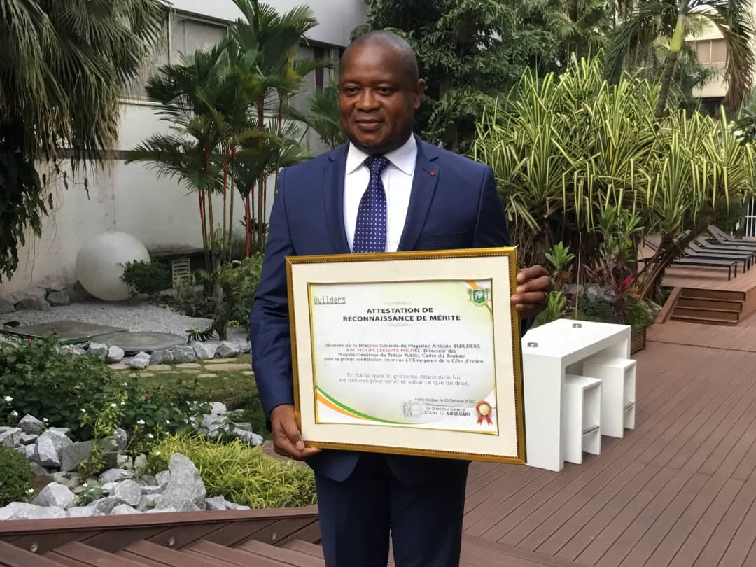 unite.ci, Abidjan le 13 octobre 2020 : Et encore un nouveau prix en reconnaissance de son talent de grand manager et de ses qualités de bâtisseur émérite de la Côte d’Ivoire moderne et de la région du Bounkani dont il est natif. Le Directeur des Moyens généraux du Trésor et de la Comptabilité Publique M. Noufé Michel s’est vu attribuer le prix de « GRAND BATISSEUR DE LA CÔTE D’IVOIRE » au nombre des 50 cadres ivoiriens les plus compétents sélectionnés dans divers secteurs d’activité.