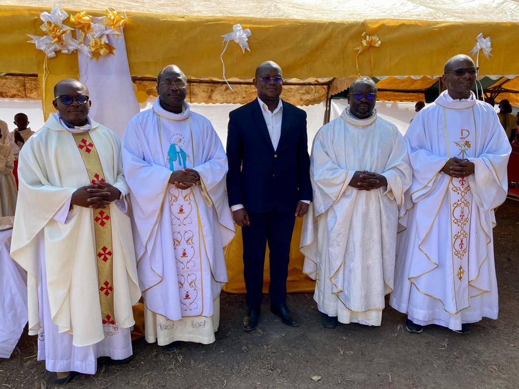 C’est le vœu du Dr Michel Noufé, Directeur des Moyens généraux du Trésor public par ailleurs, cadre de la région du Bounkani et délégué Départemental RHDP de la ZKB. Il a pris cet engagement avec le clergé Catholique du District du Zanzan et les fidèles de l’Eglise Saint-Michel Archange d’Ondéfidouo en présence des autorités Administratives et coutumières de la ville. C’était à l’occasion de la pose de la première pierre et de la célébration des 5 ans de l’existence de l’Eglise (jubilé de bois) dont il était le parrain, le samedi 25 novembre 2023 dans cette ville. Une messe spéciale a été organisée à cet effet sous la présidence du Père Joseph Kouassi, Vicaire général du Diocèse de Bondoukou représentant l’Evêque Monseigneur Bruno Esso et en présence du Sous-Prefet d’Ondéfidouo Goué Gueu Marcel.
