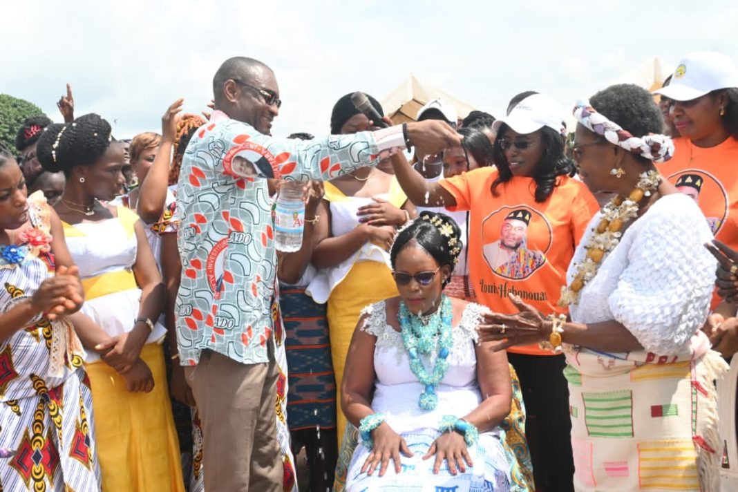 Après plusieurs villages visités, il était le samedi 20 août 2022 dans la ville de Brobo, à l’occasion de la cérémonie d’investiture de la présidente de l’association des femmes » Gnanmien Kloyé » ( Dieu nous aime ) dont il assurait le parrainage et il n’a pas manqué de rappeler aux populations les nombreuses réalisations dont elles bénéficient sous la gouvernance du président de la République, Alassane Ouattara. C’est pourquoi il les a exhortées à épouser la politique de développement prônée par le président de la République. » Je vous invite à prendre le train du développement. Le président de la République, Alassane Ouattara est en train de transformer toutes les localités du pays sans exception aucune. Et Brobo n’est pas et ne sera pas en marge de cet élan de développement. Il faut continuer à lui faire confiance », a t- il affirmé avant d’annoncer la grande nouvelle du bitumage de la voirie de Brobo. » Plusieurs voies de la ville de Brobo seront incessamment bitumées grâce au président de la République Alassane Ouattara qui a pour souci permanent, le bien-être de ses populations. Les agents de l’ageroute sont déjà sur le terrain », a t- il fait savoir.