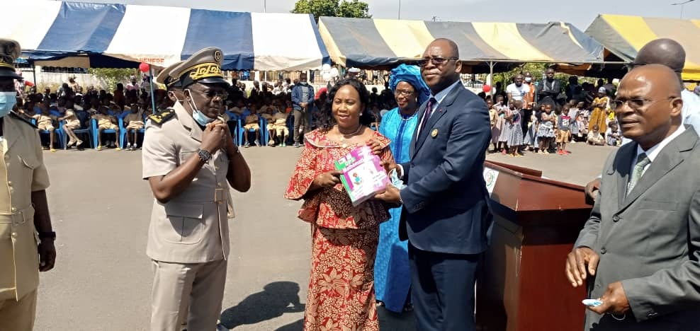 Pour soutenir cette action du gouvernement, Yao Madeleine, conseillère technique du ministre de l’économie a au nom de la fondation sacrée cœur offert 500 tables-bancs.