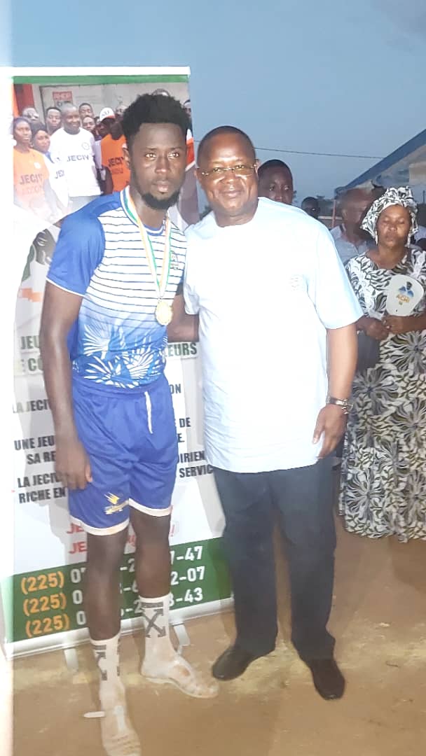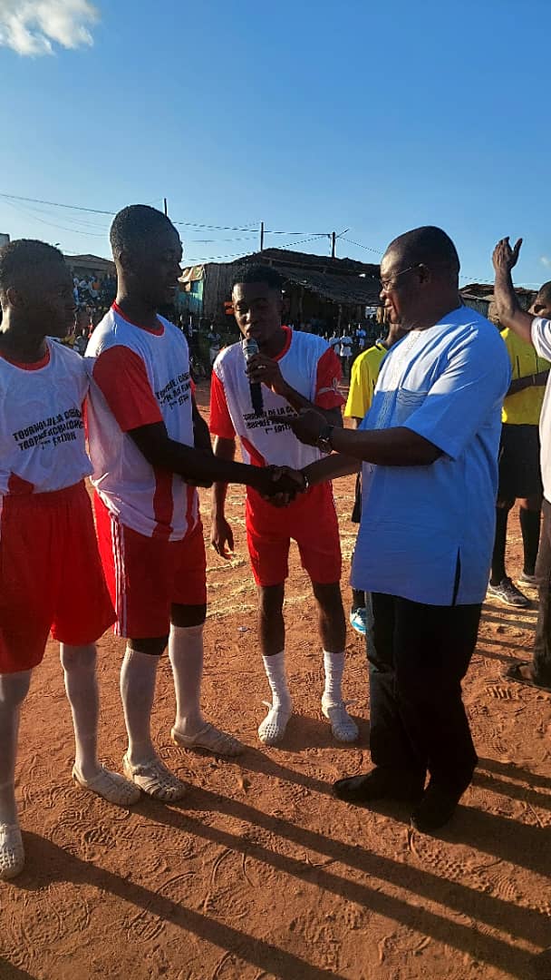 L’évènement placé sous le parrainage du Directeur des Moyens généraux du Trésor et de la comptabilité publique, Dr Michel Noufé s’est ténu ce dimanche 10 septembre au stade MASSEMBA d’Adzopé en présence de plusieurs personnalités de la ville. Avant le coup d’envoi de la finale du tournoi qui a opposé les équipes ‘’ Poutchine FC et Bayern FC’’, Dr Michel Noufé s’est félicité de l’organisation de cette activité qui célèbre le vivre –ensemble tel que prôné par le Président de la République SEM Alassane Ouattara. Pour lui, « comme il s’agit du tournoi de la fraternité, il n’aura donc aucun vaincu mais plutôt un vainqueur et ce vainqueur n’est rien d’autre que la fraternité ».