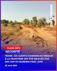 Unite.ci : Six agents de la Direction d’Aide et d’Assistance aux Réfugiés et Apatrides (DAARA) ont été enlevés ce dimanche 24 août 2025 dans la sous-préfecture de Tougbo, à la frontière ivoiro-burkinabè. En mission de recensement des familles déplacées, ces fonctionnaires ivoiriens auraient été contraints par des Volontaires pour la Défense de la Patrie (VDP), supplétifs de l’armée burkinabè, à franchir la frontière.