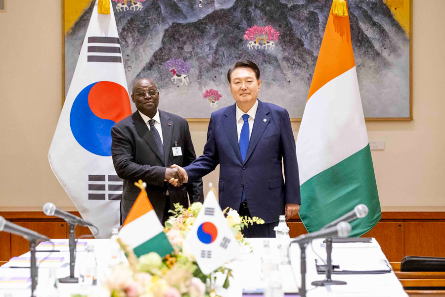 Les échanges avec le Président de la République de Corée, S.E.M. YOON Suk Yeol, ont porté sur les questions d’intérêt commun entre la Côte d’Ivoire et la Corée, ainsi que sur les relations de coopération économique et culturelle qui lient fortement les deux pays.