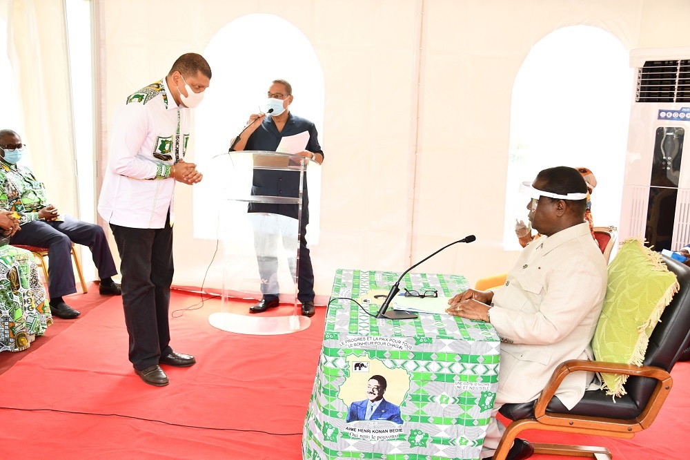 Monsieur le président, j’ai tenu à prendre la parole lors de la session du dernier bureau politique afin de demander d’être éclairé sur votre position. Nous avions besoin de savoir si vous êtes candidat ou non. Moi-même ayant des ambitions, aujourd’hui devant la demande qui vous est faite, sachant que vous allez répondre de manière positive, je retire ma candidature et je demande à tous les jeunes de s’aligner derrière vous pour mener le combat et vous apporter la victoire. Nous sommes des militants unis, loyaux et nous allons jouer avec la force et la discipline du parti. Soyez rassuré de mon indéfectible attachement à votre victoire. Je mettrai tout en œuvre pour vous apporter cette victoire. Merci à tous les jeunes du parti. Nous allons traverser le fleuve avec vous, nous allons vous suivre, protégez-nous et comme vous l’avez si bien dit lors d’une rencontre avec vous, de l’autre côté du fleuve, vous allez nous passer la main.